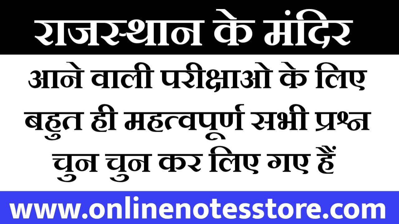 यहाँ से आप राजस्थान के मंदिर के सभी वस्तुनिष्ठ प्रश्न एक्साम पैटर्न के हिसाब से बनाने हुये है सभी प्रश्नोत्तरी चुन-चुन कर लिए गये हैं जो कि पिछले कई एग्जाम में पूछे जा चुके हैं और आने वाले एग्जामो के लिए बहुत महत्वपूर्ण है। यह सभी प्रश्न आपके लिये मददगार साबित होगे ! आप website पर रोजाना अपडेट देखते रहे और लाभान्वित होते रहे !